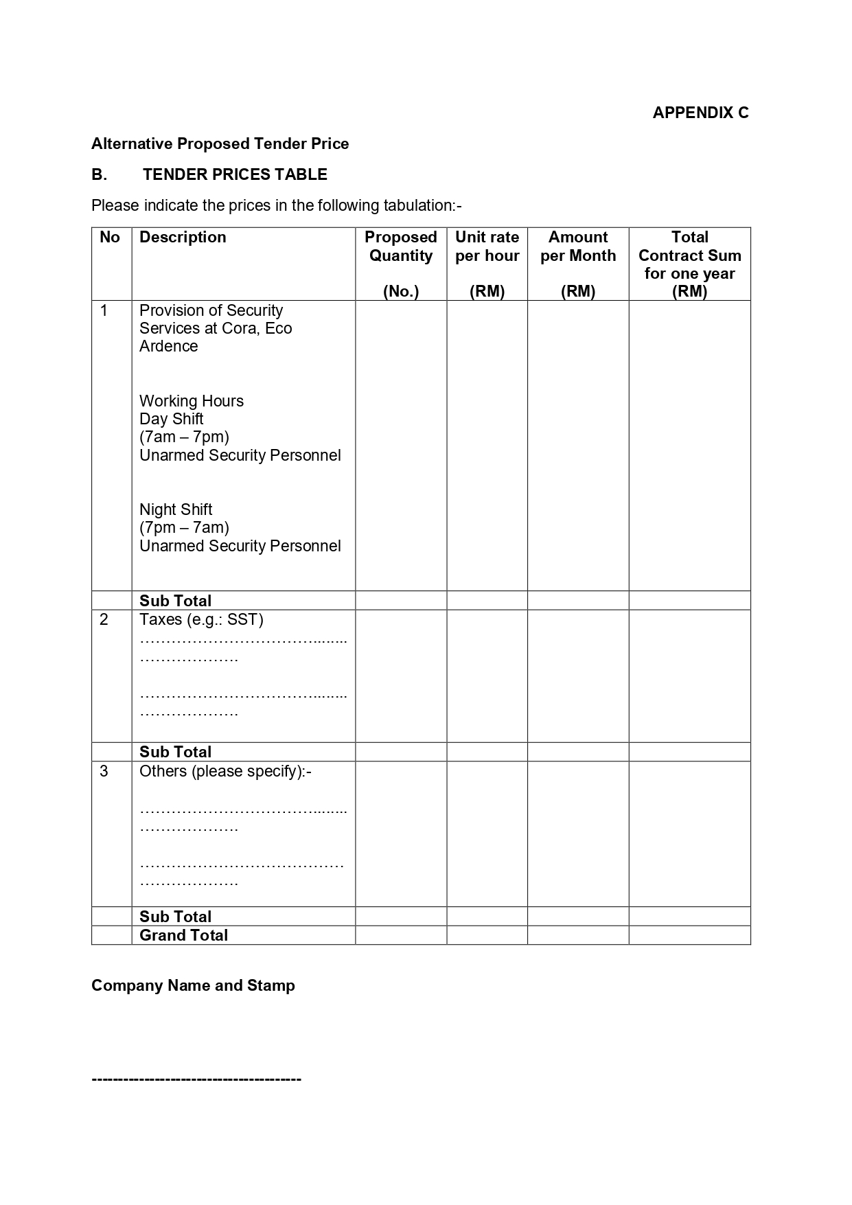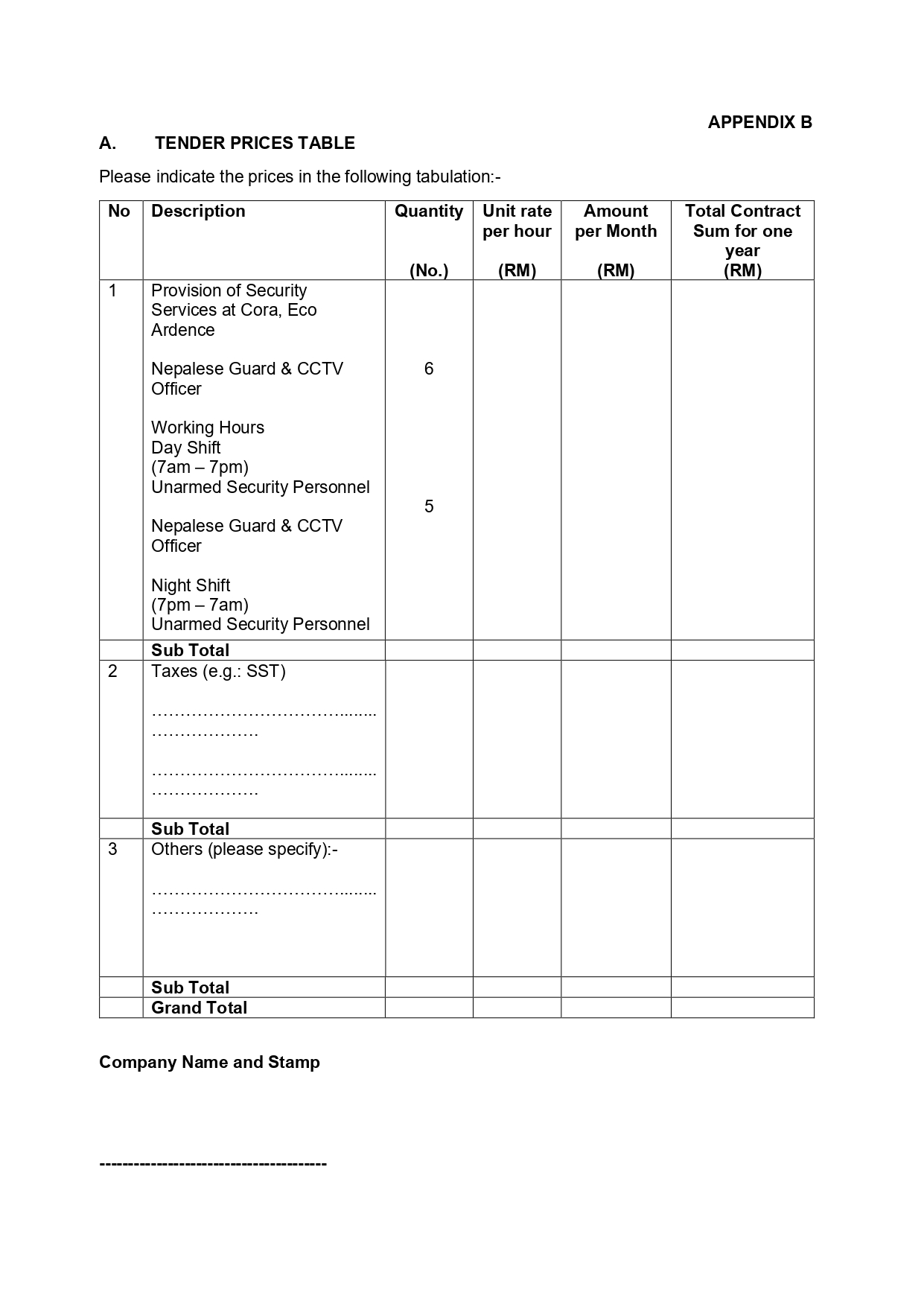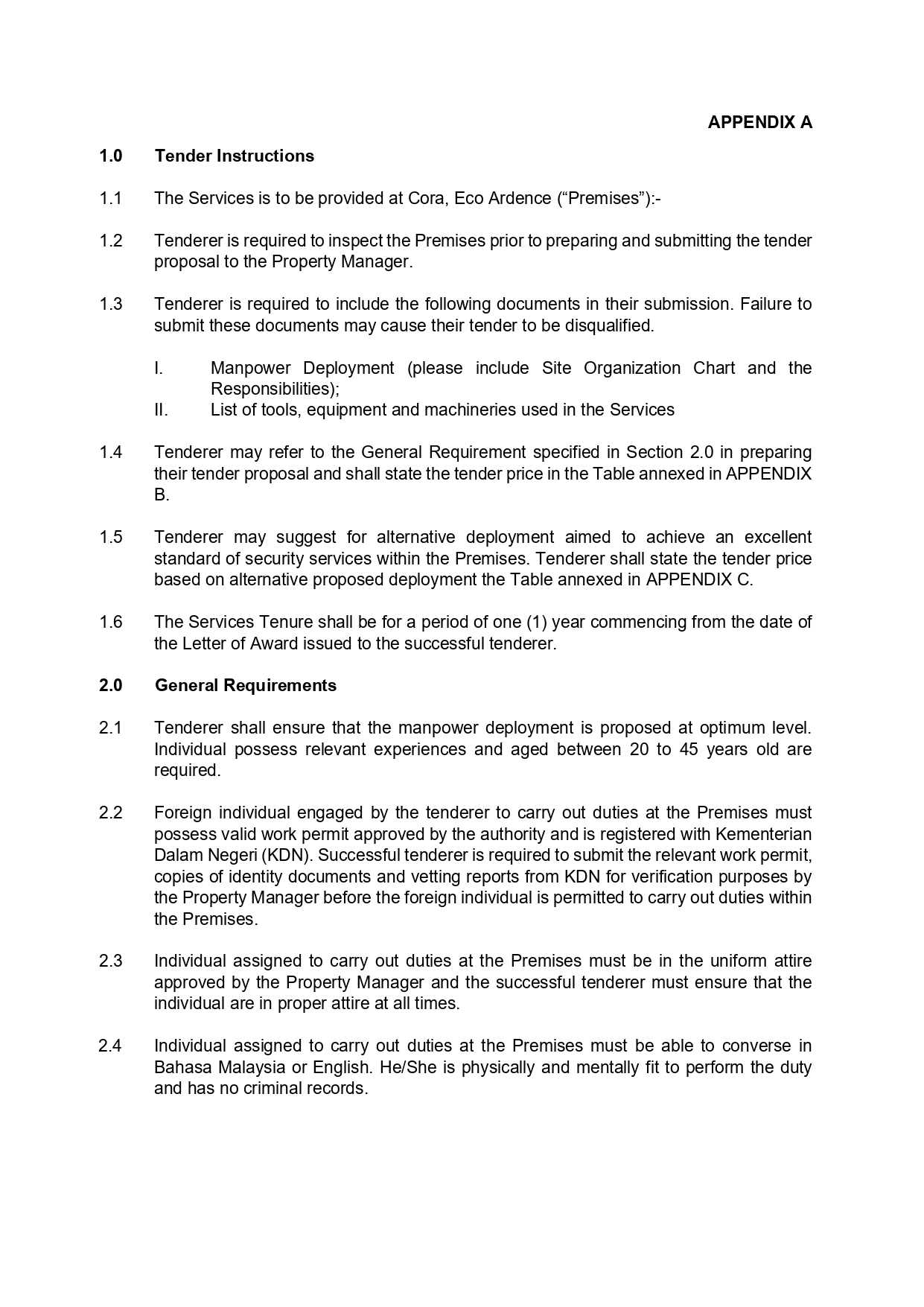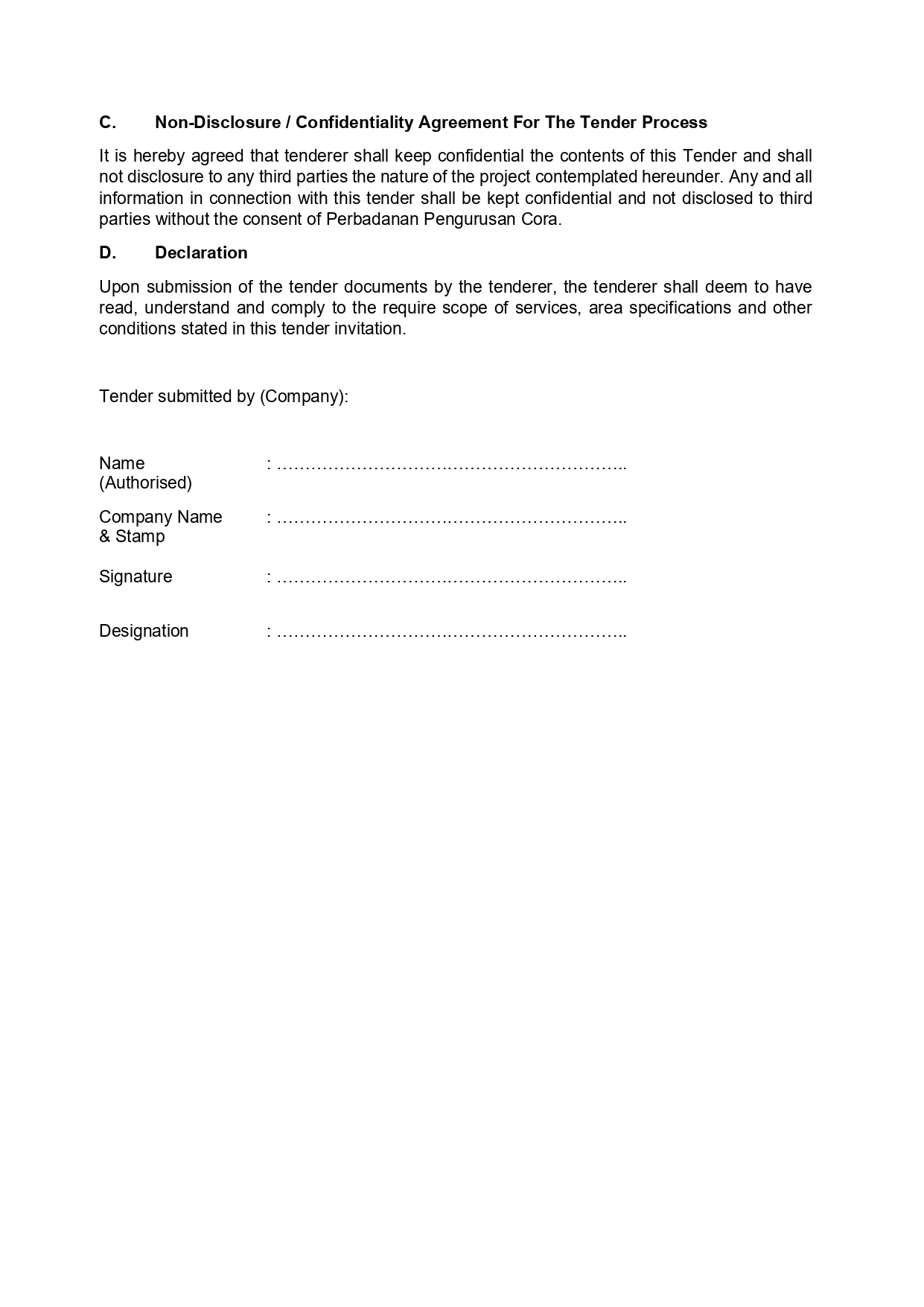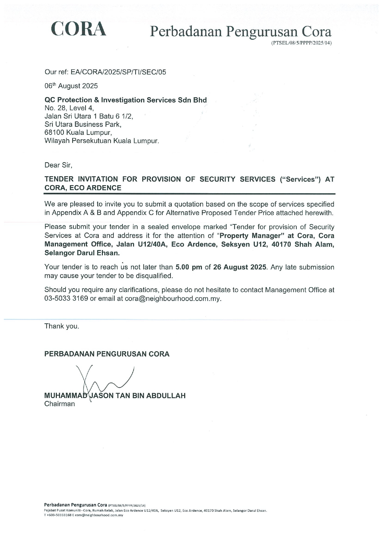 TENDER PERKHIDMATAN KAWALAN KESELAMATAN TANPA SENJATA API KE PERBADANAN PENGURUSAN CORA